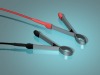 Heavy gauge stainless steel springs with easy grip neoprene slides and heavy duty wire supports. 24" red/black PVC insulated lead wires terminate in standard touch-proof connection. Also available with 36" shielded lead wire (special order only). Sold non-sterile.