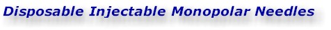 Teflon coated stainless steel hollow injectable monopolar needle electrode with super-flexible 24" insulated lead wire attached. Terminates in a standard touch-proof connection. Sold in packages of 10 needles.